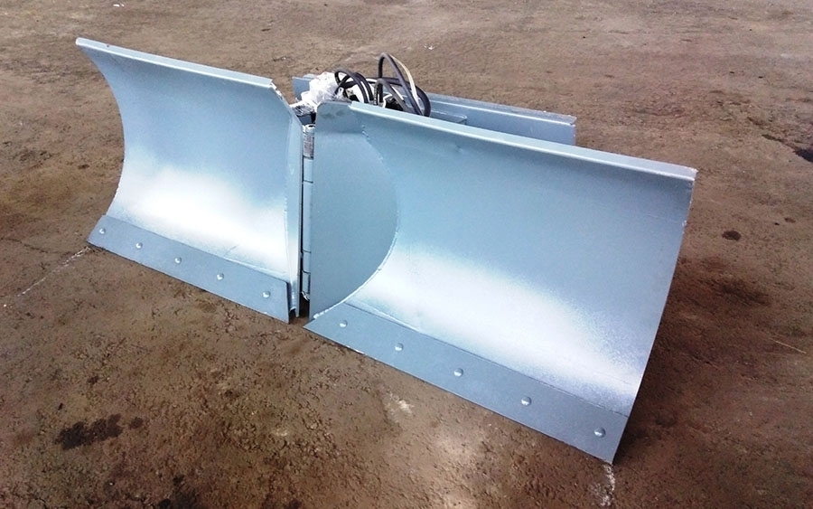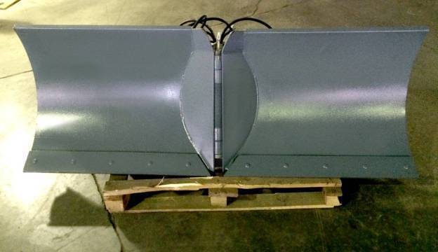 Отвал состоит из двух секций «крыльев», которые с помощью гидроцилиндров синхронно поворачиваются вокруг одной оси. Это образует положительный или отрицательный угол «V» по ходу движения погрузчика. Это позволяет: