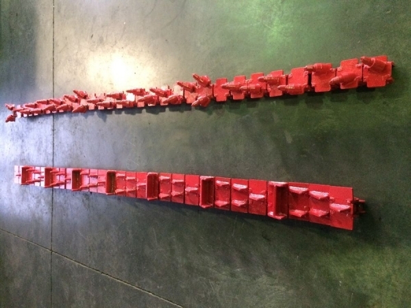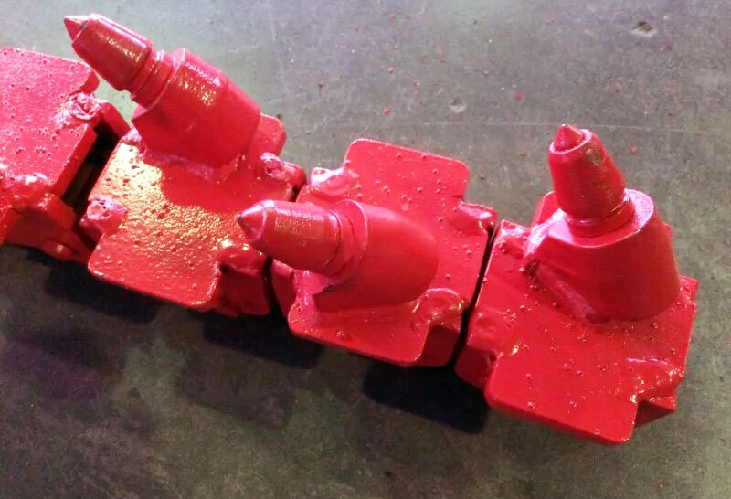 Цепь баровая резцовая для траншеекопателя новой конструкции с использованием твердосплавных режущих элементов.